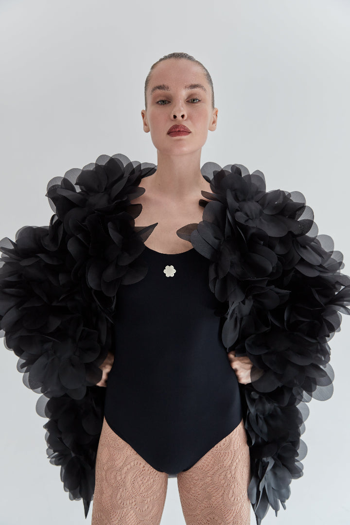 Пальто з органзи оздоблене 3D-квітами півонії, що розкривають красу жіночої природи. 1062 пелюстки створюються в знаковій техніці laser cut та дбайливо фіксуються вручну, формуючи виріб із кутюрним характером. Пальто PASKAL Peony додає легкості та ультрафемінності в образи для в образи для особливих подій, вечірок і моментів, коли просто хочеться квітнути.