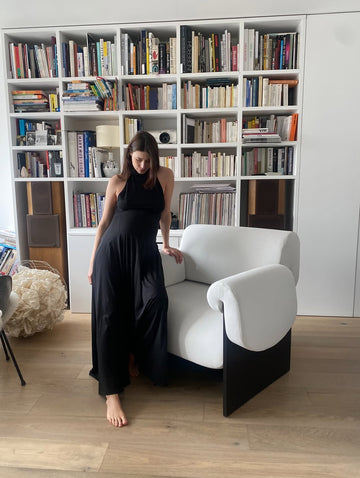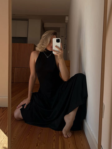 Виготовлена з найкражного італійського трикотажу, вона має об’ємну спідницю, відкриту спину та скульптурний силует, що підкреслює талію й плавні лінії тіла.