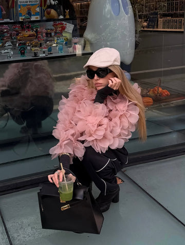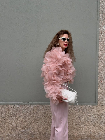 Бомбер з органзи оздоблений 3D-квітами півонії, що розкривають красу жіночої природи. 630 пелюсток створюються в знаковій техніці laser cut та дбайливо фіксуються вручну, формуючи виріб із кутюрним характером. Бомбер PASKAL Peony додає легкості та ультрафемінності в образи для особливих подій, вечірок і моментів, коли просто хочеться квітнути.