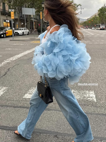 Бомбер з органзи оздоблений 3D-квітами півонії, що розкривають красу жіночої природи. 630 пелюсток створюються в знаковій техніці laser cut та дбайливо фіксуються вручну, формуючи виріб із кутюрним характером. Бомбер PASKAL Peony додає легкості та ультрафемінності в образи для особливих подій, вечірок і моментів, коли просто хочеться квітнути.