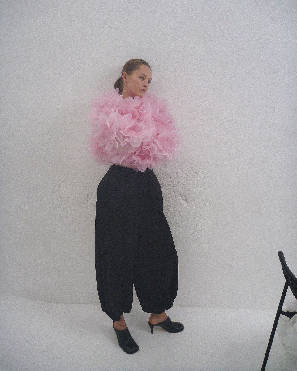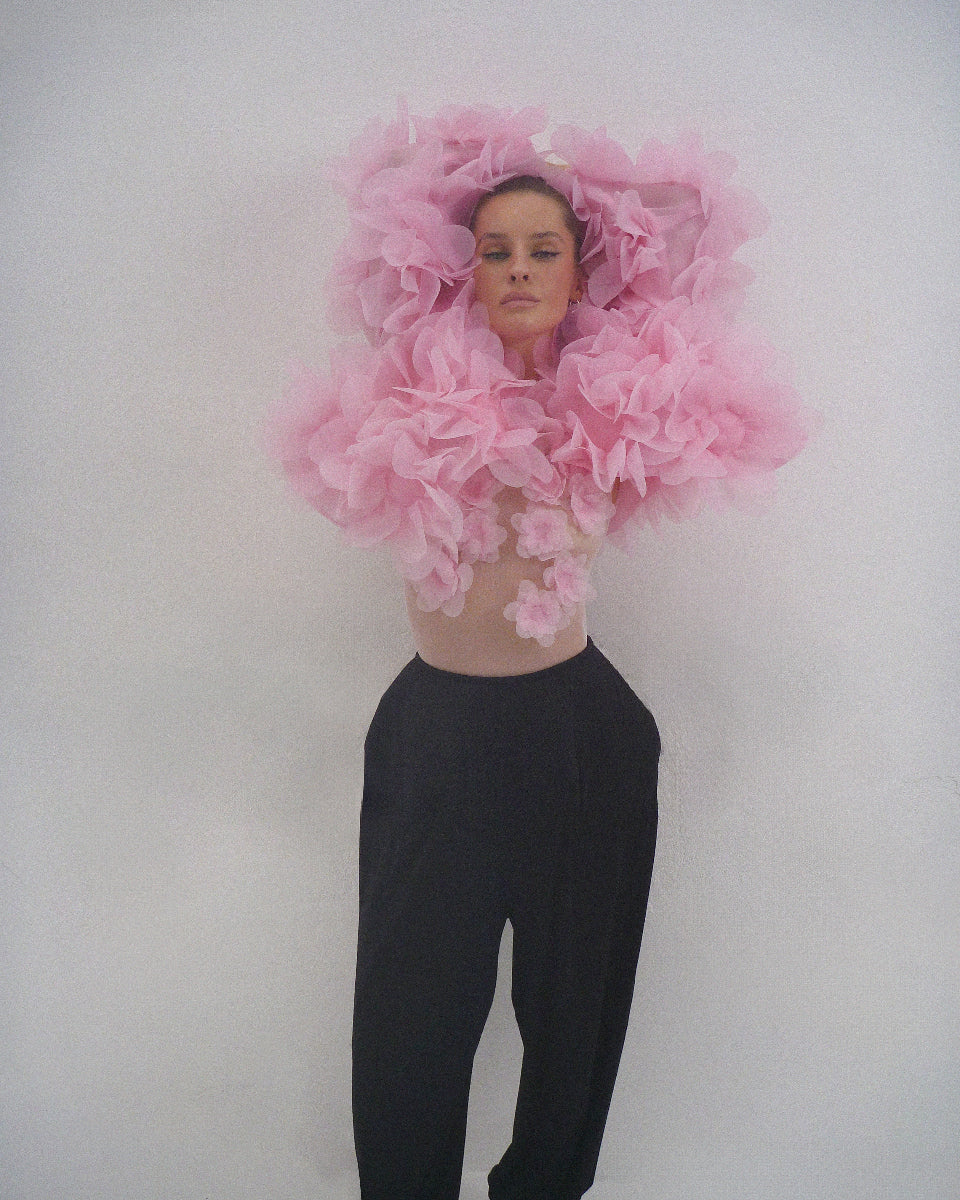 Бомбер з органзи оздоблений 3D-квітами півонії, що розкривають красу жіночої природи. 630 пелюсток створюються в знаковій техніці laser cut та дбайливо фіксуються вручну, формуючи виріб із кутюрним характером. Бомбер PASKAL Peony додає легкості та ультрафемінності в образи для особливих подій, вечірок і моментів, коли просто хочеться квітнути.
