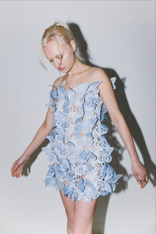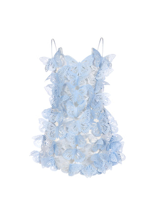 Spaghetti strap mini laser-cut dress with butterfly appliques