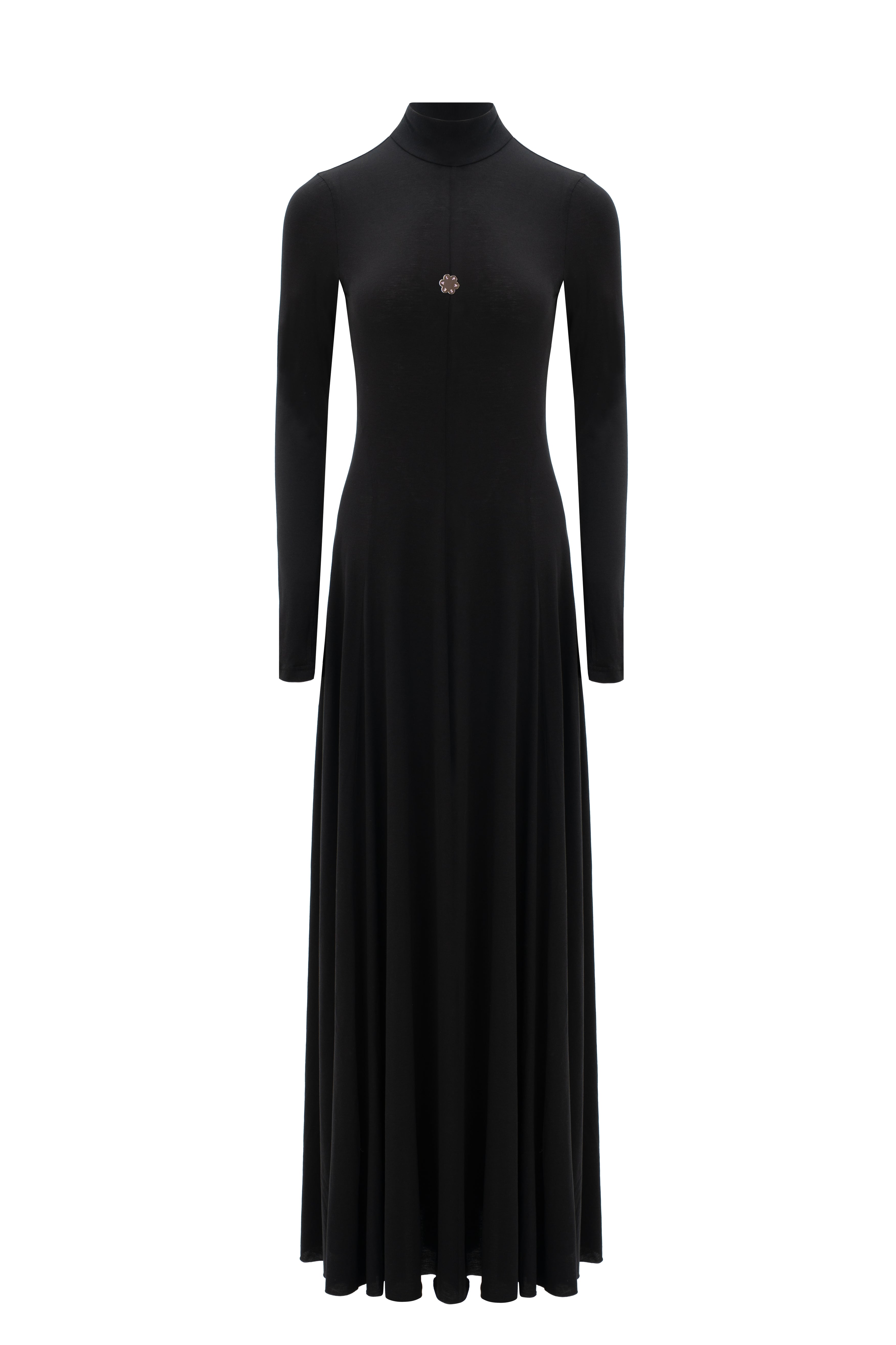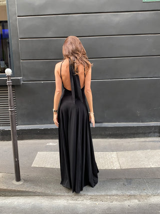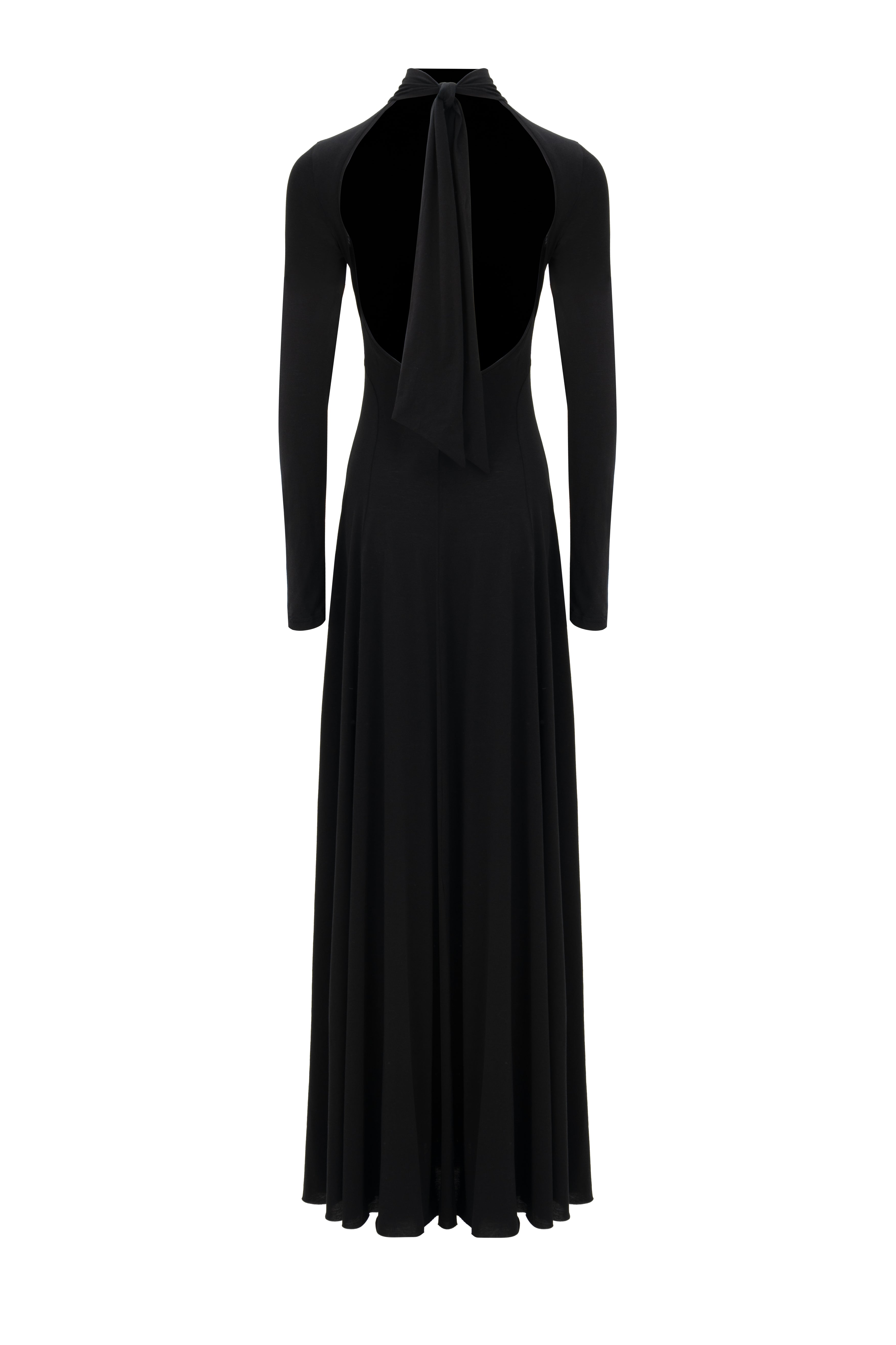 Crafted from the finest Italian knitwear, it features a voluminous skirt, an open back, and a sculptural silhouette that highlights the waist and contours of the body.
