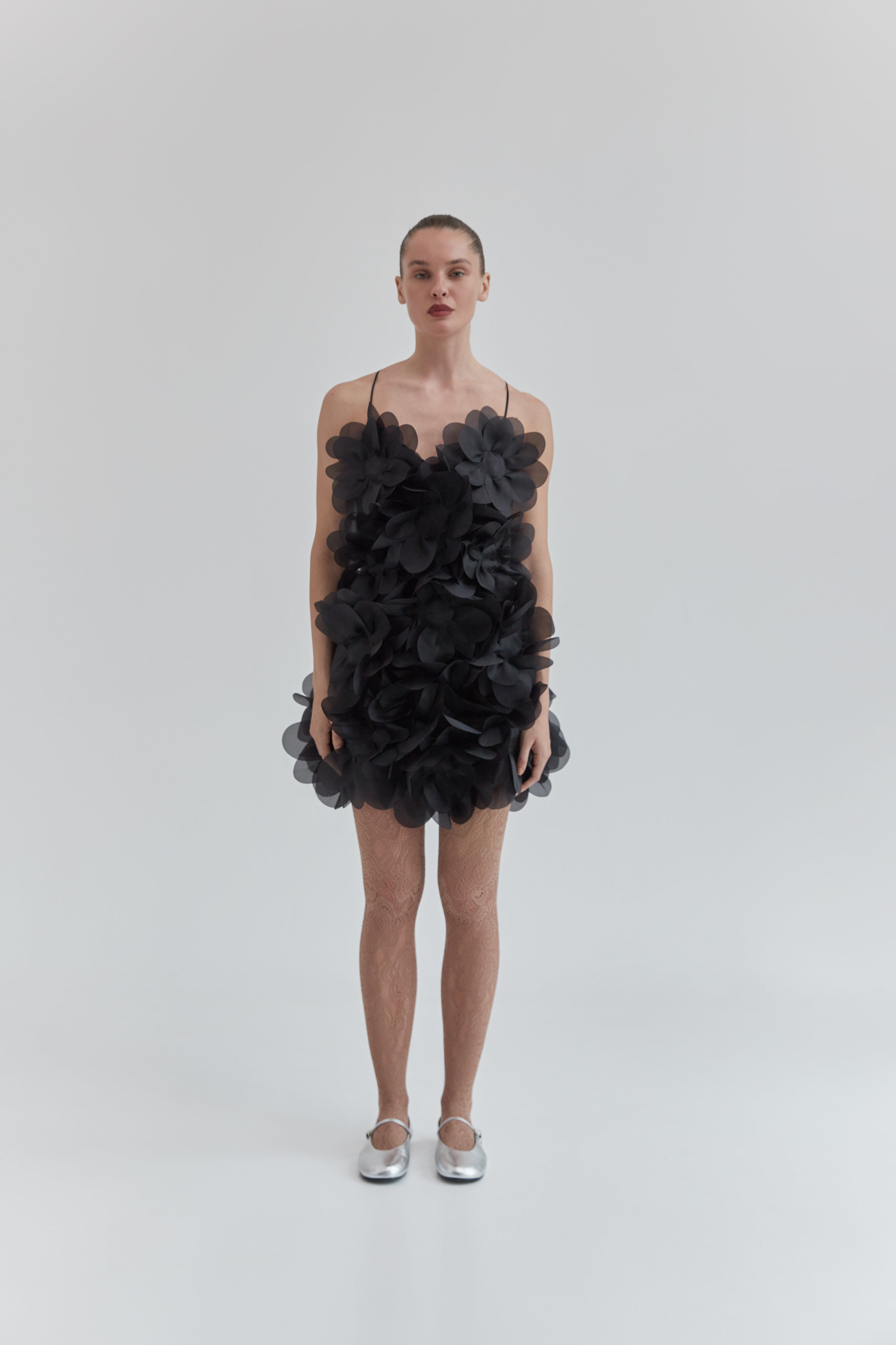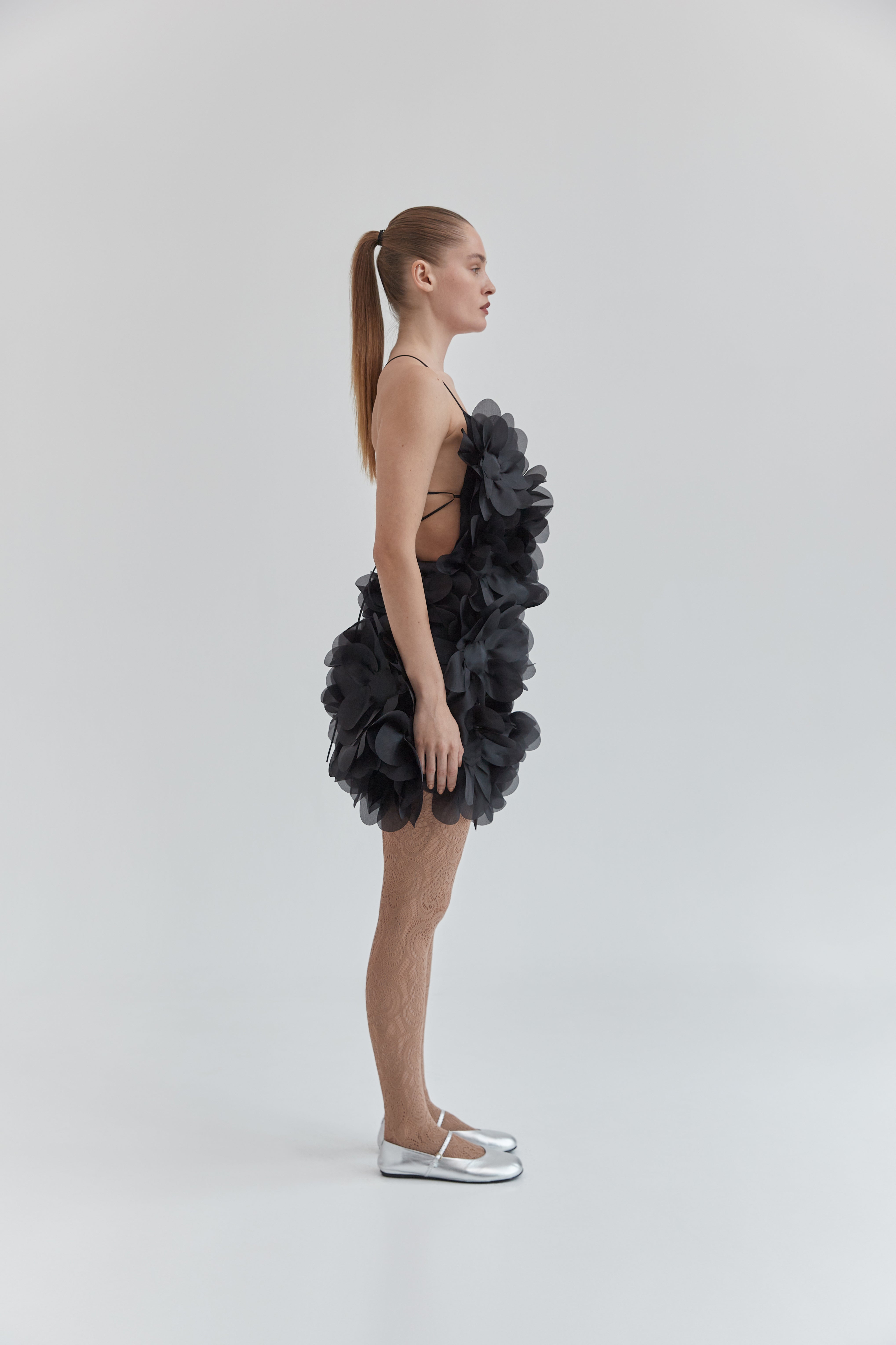 An organza mini dress is embellished with 3D peony flowers that reveal the beauty of feminine nature. 360 petals are crafted using PASKAL’s signature laser-cut technique and carefully arranged by hand, shaping a piece with a couture character. Delicate straps flow into ties at the open back, allowing for a fit you can adjust to perfection. The PASKAL Peony dress brings softness and ultra-femininity to outfits for special occasions, parties, or those moments when you simply feel like blooming.